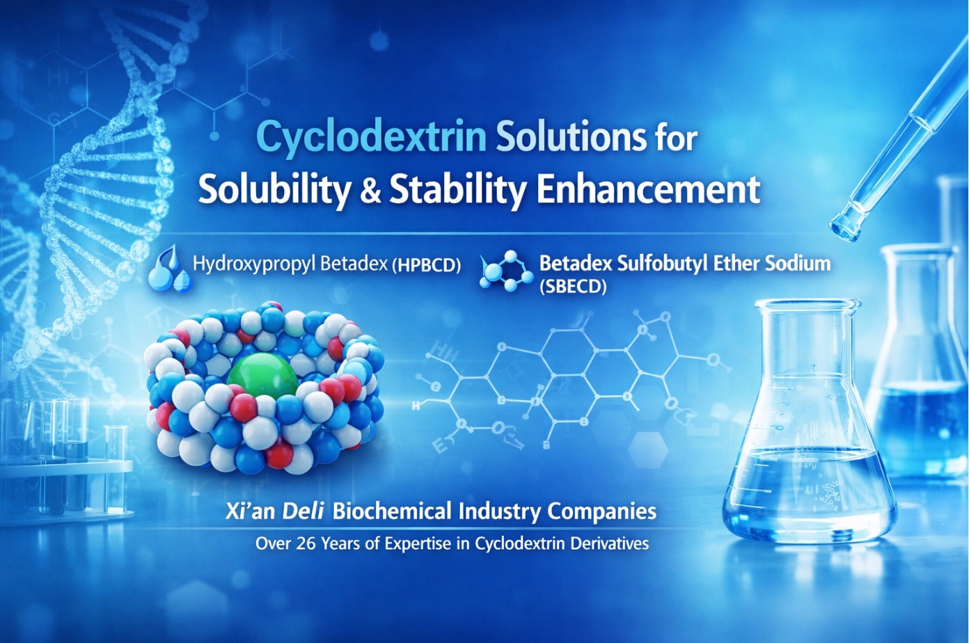 Cyclodextrins ໄດ້ຖືກຮັບຮູ້ຢ່າງກວ້າງຂວາງສໍາລັບຄວາມສາມາດໃນການປັບປຸງການລະລາຍແລະຄວາມຫມັ້ນຄົງຂອງທາດປະສົມທີ່ລະລາຍບໍ່ດີຫຼືມີຄວາມອ່ອນໄຫວທາງເຄມີ. ເນື່ອງຈາກໂຄງສ້າງໂມເລກຸນ cyclic ເປັນເອກະລັກຂອງພວກມັນ, cyclodextrins ແລະອະນຸພັນຂອງພວກມັນໄດ້ກາຍເປັນທາດປະສົມທີ່ເປັນປະໂຫຍດທີ່ສໍາຄັນໃນທົ່ວຂະແຫນງການຢາ, ເຄມີ, ແລະສູດທີ່ກ່ຽວຂ້ອງ. ໃນການຕອບສະຫນອງຕໍ່ຄວາມຕ້ອງການດ້ານວິຊາການແລະກົດລະບຽບທີ່ເພີ່ມຂຶ້ນ, Xi'an Deli Biochemical ໄດ້ປັບປຸງເອກະສານດ້ານວິຊາການແລະການສະຫນັບສະຫນູນຜະລິດຕະພັນສໍາລັບອະນຸພັນ cyclodextrin ທີ່ສໍາຄັນຂອງຕົນ:hydroxypropyl betadex (HPBCD) ແລະ betadex sulfobutyl ether sodium (SBECD).