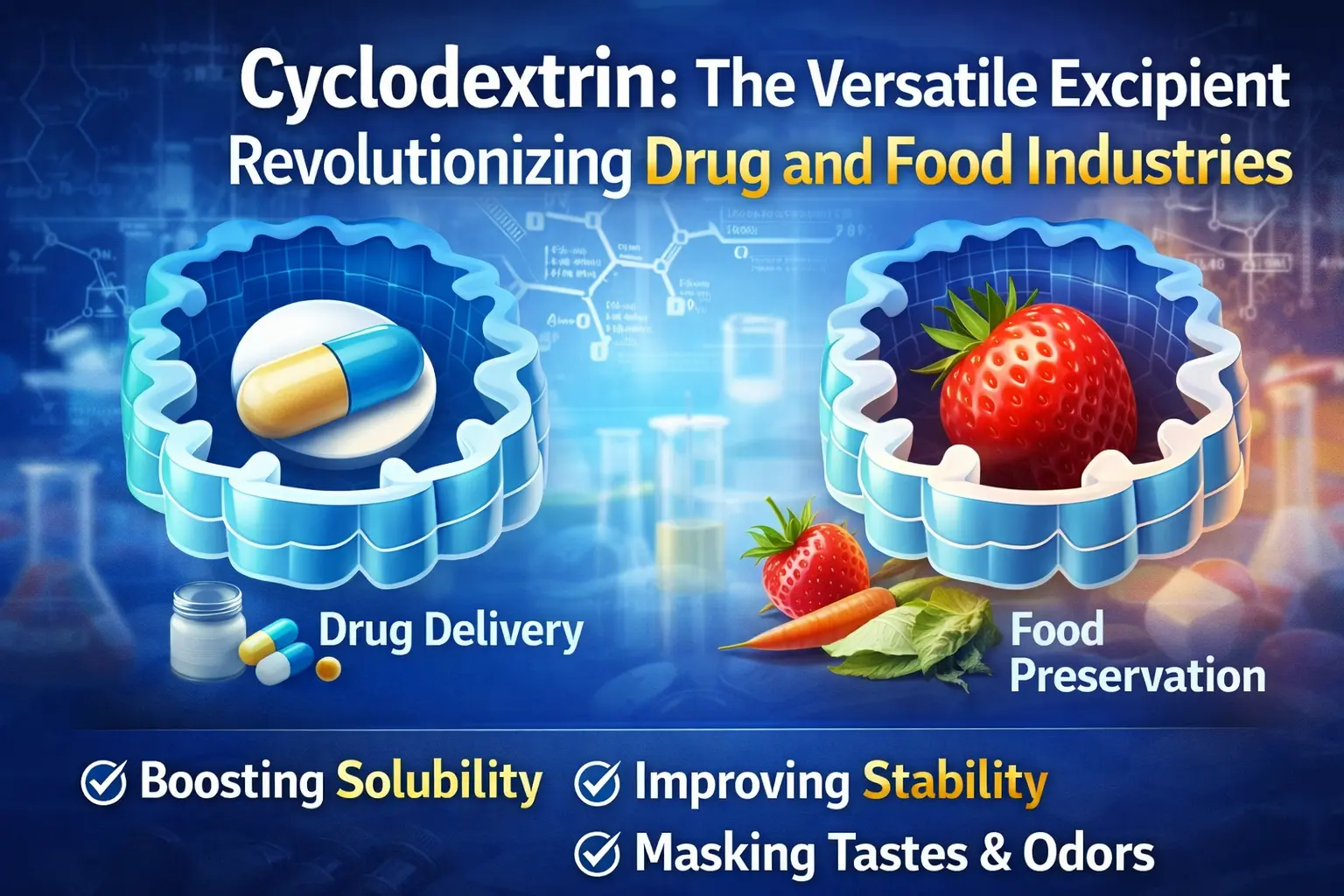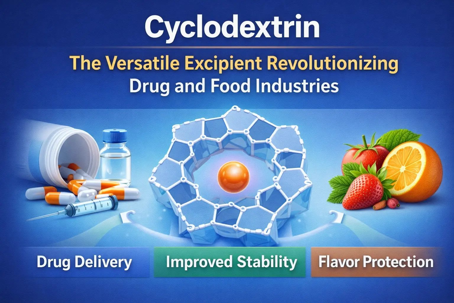 ການຄົ້ນພົບ cyclodextrin ແມ່ນຫນຶ່ງໃນບັນດາບາດກ້າວທີ່ສໍາຄັນຕໍ່ຫນ້າໃນປະຫວັດສາດຂອງອາຫານແລະຢາ. oligosaccharide cyclic ທີ່ເກີດຂຶ້ນຕາມທໍາມະຊາດນີ້ໄດ້ປ່ຽນແປງວິທີທີ່ພວກເຮົາສົ່ງຢາ, ຮັກສາອາຫານໃຫ້ສົດ, ແລະນໍາໃຊ້ສານເຄມີອື່ນໆຢ່າງຫຼວງຫຼາຍໃນອຸດສາຫະກໍາ. pruduct ເຮັດໃຫ້ມີການລວມເອົາສະລັບສັບຊ້ອນທີ່ແກ້ໄຂບັນຫາທີ່ສໍາຄັນໃນຫຼາຍໆດ້ານຍ້ອນໂຄງສ້າງໂມເລກຸນທີ່ໂດດເດັ່ນຂອງມັນ, ເຊິ່ງມີຊ່ອງຫວ່າງໃນ hydrophobic ແລະດ້ານນອກ hydrophilic. excipient ປ່ຽນແປງໄດ້ນີ້ແມ່ນການປ່ຽນແປງວິທະຍາສາດການສ້າງແລະຂະບວນການຜະລິດໃນທົ່ວໂລກ. ມັນສາມາດເຮັດໄດ້ທຸກຢ່າງຕັ້ງແຕ່ການປັບປຸງການດູດຊຶມຂອງຢາຈົນເຖິງການເຊື່ອງລົດຊາດທີ່ບໍ່ດີໃນຢາ.